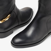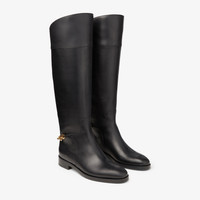 Details, Care & Fit Item No. NELLKBFLATSVH In soft vachetta, our Nell boots are designed to an equestrian-inspired silhouette. This knee-high style is complemented by a gold-tone chain, signature to our Diamond collection. Pair with dresses or denim for style that transcends seasons. Italian sizing. Fits true to size. - Soft vachetta leather - Knee-high - Low stacked heel - 'Diamond' chain - Made in Italy