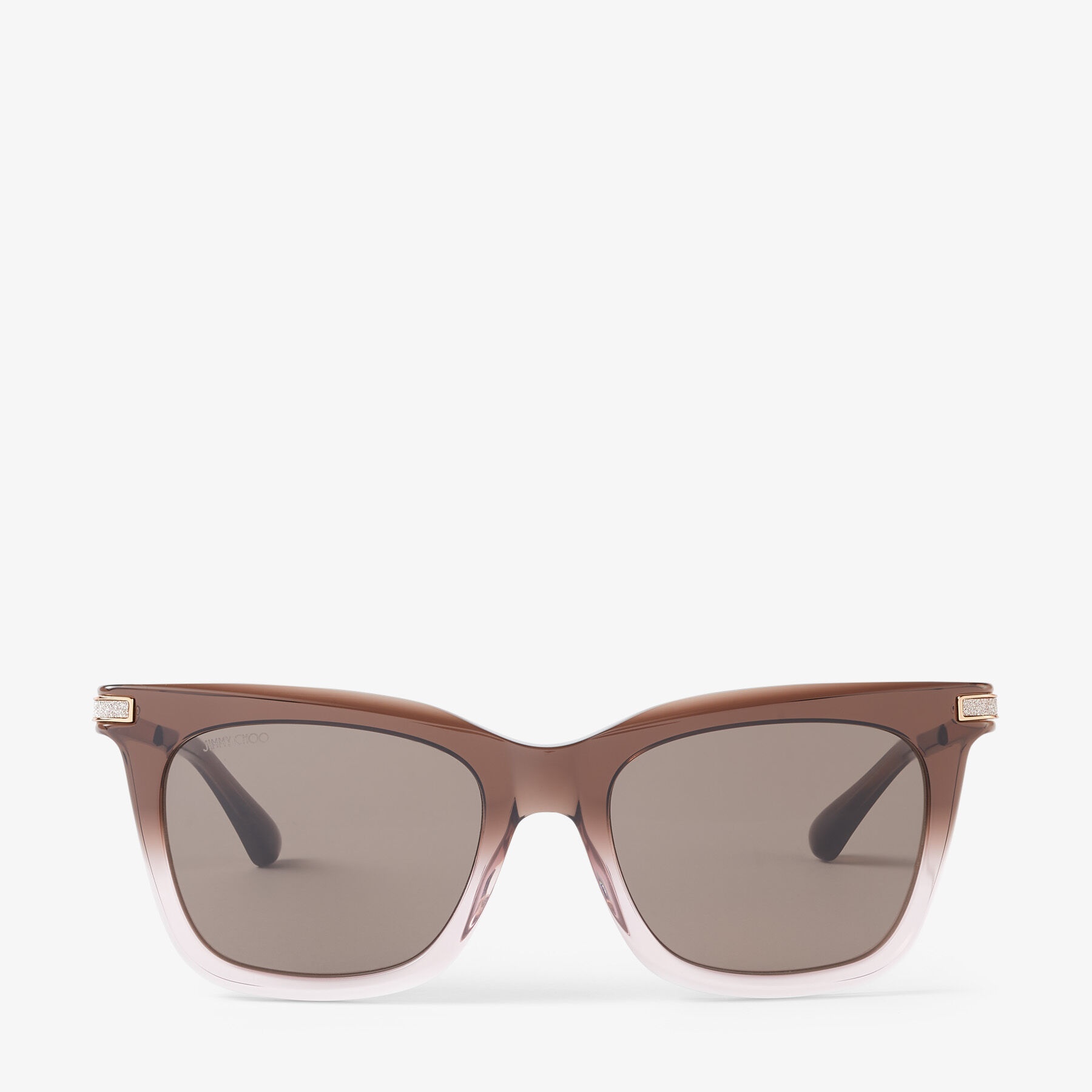 Brown Transparent Square-Frame Sunglasses with Glitter