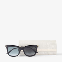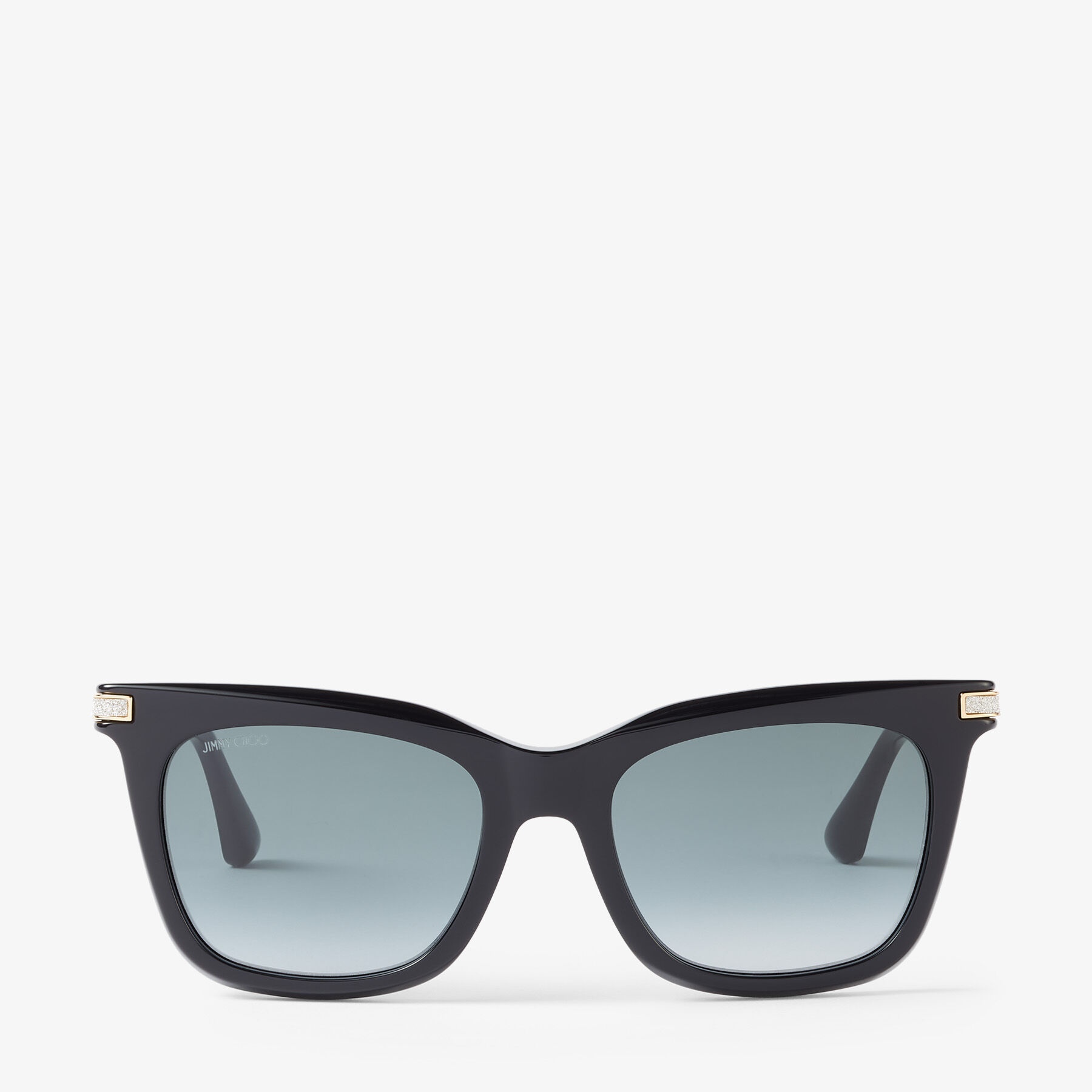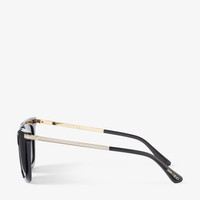Details, Care & Fit Item No. OLYES52E807 For understated modernity, look to our OLYE sunglasses in an oversized square shape and grey shaded lenses. Italian-crafted in a lightweight acetate and metal temples – this sleek pair is complemented by glitter detailing. Your go-to for subtle glamour in your daily dressing. - Black acetate front - Metal temples with glitter detail - Square frame - Grey shaded lenses - 100% UVA and UVB protection - Comes with sustainable natural linen soft case with gold JC logo and cloth - Made in Italy