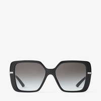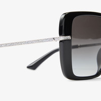Details, Care & Fit Bold proportions meet soft tones in these oversized square sunglasses. Crafted with a black frame and silver glitter-detailed temples, the Pati silhouette offers modern glamour with a lightweight feel. Gradient lenses complete the look. - Acetate containing 27% recycled content - Poliammide Bio lenses - Gradient grey shaded lenses - Square frame - Jimmy Choo logo - Glitter detail - 100% UVA and UVB protection - Presented with a Jimmy Choo case and cleaning pouch - Bridge length: 1.5cm - Temple length: 14cm - Made in Italy