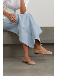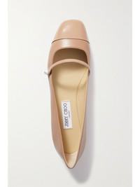 Elisa embellished patent-trimmed leather Mary Jane flats Beige