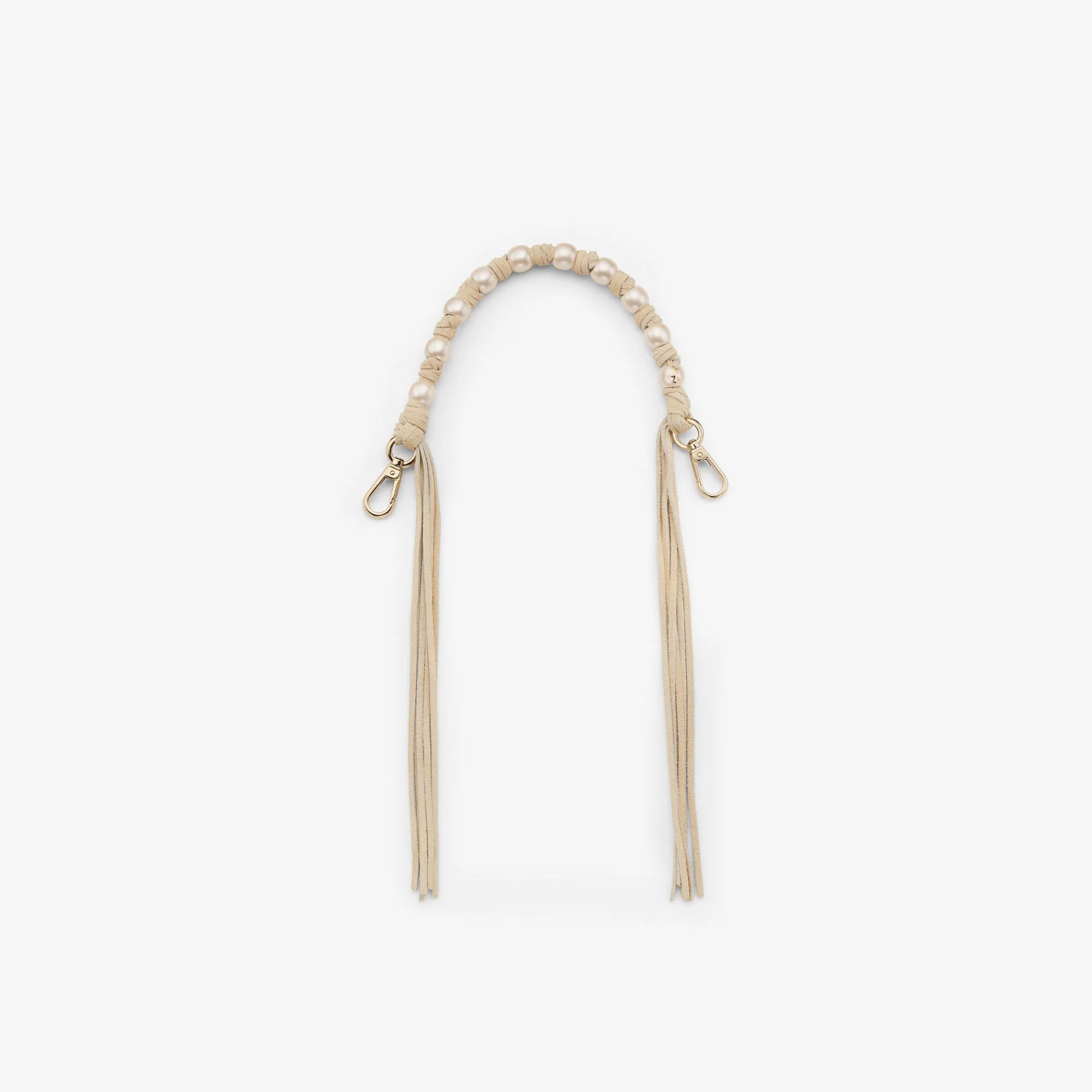 Details, Care & Fit Crafted from soft suede fringe and a string of pastel-toned pearls, this charm adds a playful yet polished touch to your handbag. Finished with polished metal clips for effortless styling, it brings a hint of movement and individuality to your everyday carry. - Suede fringe - Pearl charms - Polished metal clips - Key ring - Loop fastening - Measurements: L 1.7 x H 0 x W 1.7cm - Made in Italy