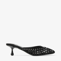 Details, Care & Fit Celebrating Jimmy Choo's inherent artistry, the Pixie Mule is an elegant satin shoe, handwoven by master artisans in Italy. The knotted upper is complemented by individually placed eyelets and the signature drop heel. - Woven Satin - Metal eyelets - Drop heel - Heel height measurements: 50mm / 1.9 inches - Made in Italy