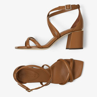 Details, Care & Fit Item No. RHEEA65NAP Crafted in luxe Nappa leather, our Rheea sandals are an effortlessly elegant yet modern style. Featuring slim crossed straps, they're designed with a block heel with a metal accent and an adjustable ankle strap. Stylishly versatile; perfect for your work-to-weekend wardrobe. - Nappa leather - Square toe - Gold-tone hardware - Block heel - Heel height measures: 65mm/2.6 inches - Made in Italy