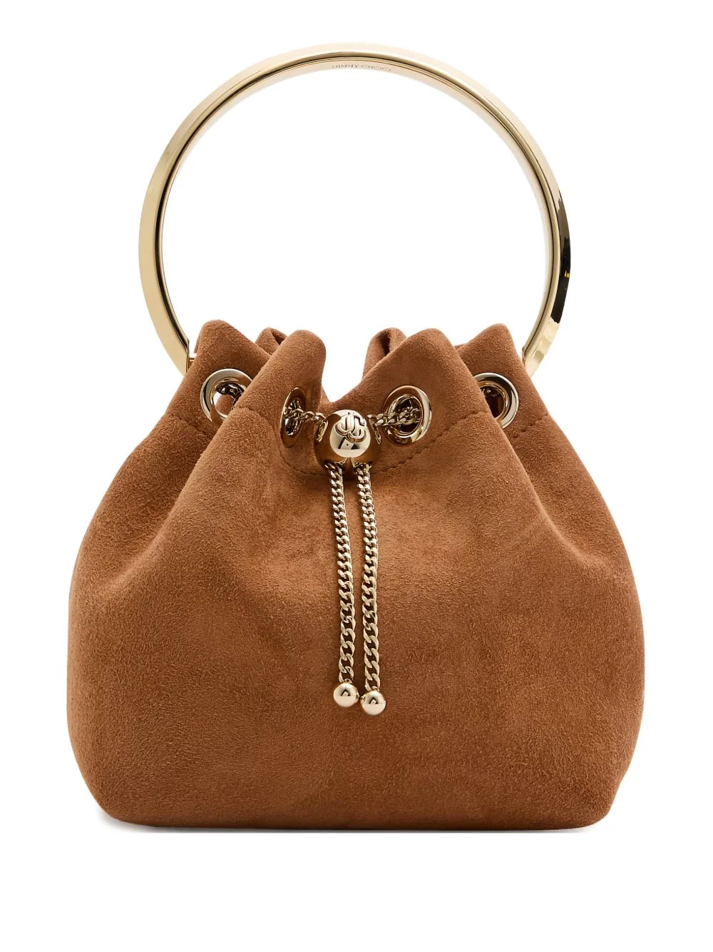 ring-handle tote bag Highlights - Toffee brown - Ring top handle - Drawstring fastening - Chain detailing - Gold-tone hardware Made in Italy Composition Outer: Calf Suede 100% SIZE & FIT Measurement DEPTH 3.74 in(9.5 cm) HEIGHT 5.9 in(15 cm) WIDTH 5.51 in(14 cm)