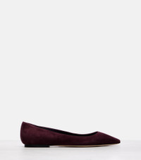 Opt for the Romy ballet flats from Jimmy Choo for effortless everyday elegance. Crafted from buttery suede, this pair features a streamlined silhouette that has endless versatility. Product Details - Upper: leather (suede) - Lining: leather - Sole: leather insole and sole - Toe shape: pointed toe - Made in Italy - Includes: shoe box, dust bag - Designer color name: Deep Merlo - Item color: burgundy - Item number: P01071186 Size & Fit - Fits slightly large to size - we recommend trying a half size smaller - European sizes