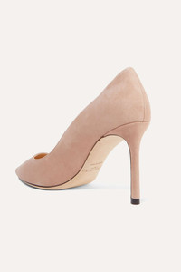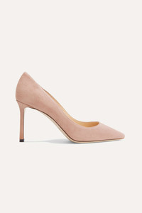 EDITORS'NOTES Not only are Jimmy Choo's heels elegant, they're flattering and comfortable, too - hence why they've been spotted on Emma Stone, Olivia Palermo and Sienna Miller at red carpet events. Crafted in Italy, these suede 'Romy' pumps have a classic pointed toe and slender stiletto heel. The antique-rose color goes with everything. Shown here with: [Stella McCartney Dress id1071635], [Gucci Shoulder bag id1084966], [Dinosaur Designs Earrings id1076163]. SIZE & FIT - Fits true to size, take your normal size - Italian sizing DETAILS & CARE - Heel measures approximately 85mm/ 3.5 inches - Antique-rose suede - Slip on - Designer color: Ballet Pink - Made in Italy