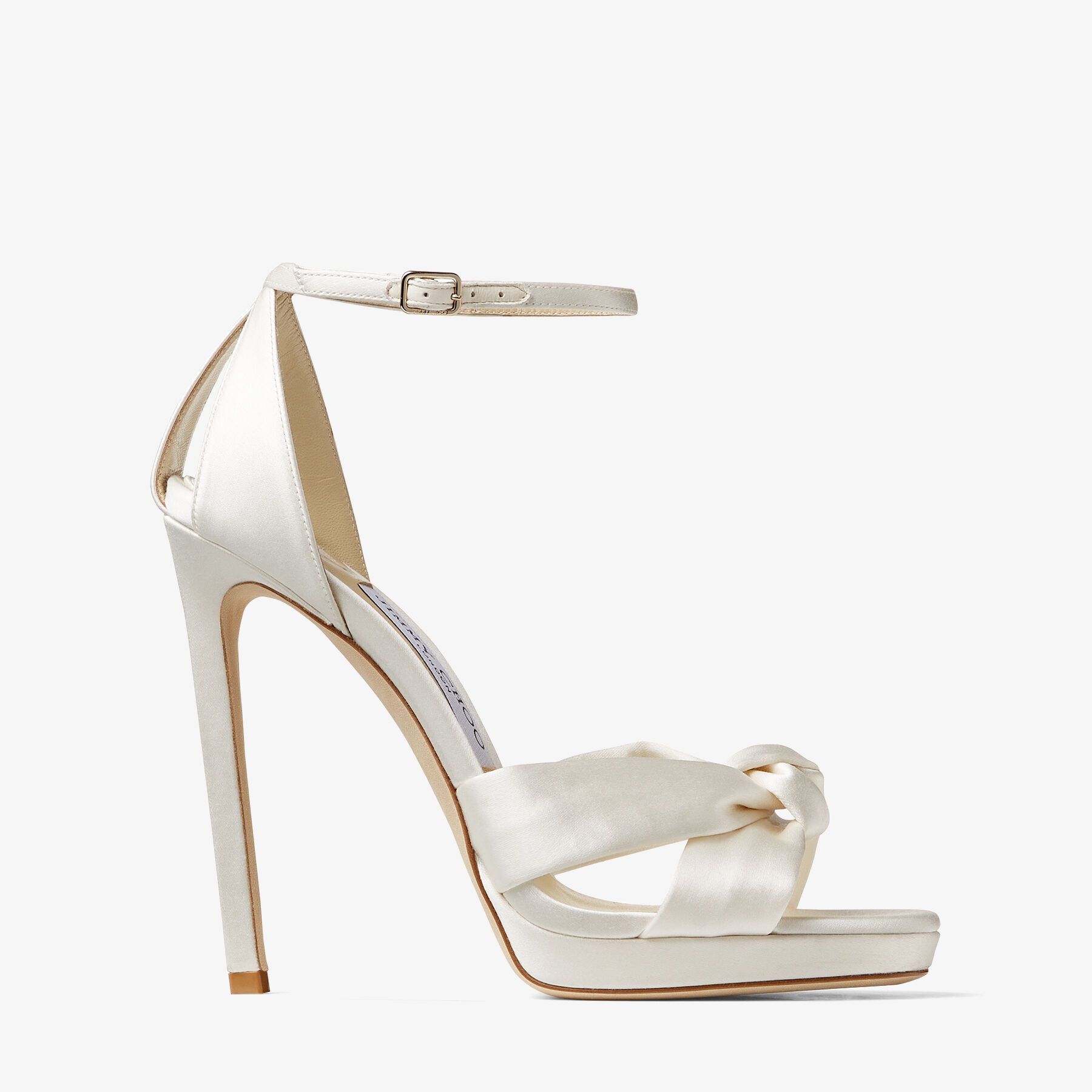 Details, Care & Fit Item No. ROSIE120SAT Our ROSIE platform sandals will add a dose of glamour to your wedding day. Feminine and modern, they are Italian-crafted in ivory satin. This pair sits on a daring 120mm heel and features a knotted detail created by interlocking two tubular straps of the sumptuous satin. Italian sizing. Fits true to size. - Satin - Knotted satin toe strap - Round toe - Ankle strap with buckle fastening - Heel height measures: 120mm/4.7 inches - Platform measures: 10mm - Made in Italy