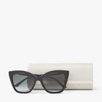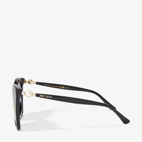 Details, Care & Fit Item No. RUAGS56E807 Our Rua sunglasses arrive in a subtle cat eye shape with grey shaded lenses. Crafted in Italy, this pair is distinguished by rose gold temples embellished with pearls and Swarovski crystals. An elegant pair that perfectly complements glamorous looks. - Acetate front - Rose gold temples - Cat eye frame - Pearl and Swarovski crystal embellishment - Grey shaded lenses - 100% UVA and UVB protection - Comes with Jimmy Choo case and cloth - Made in Italy