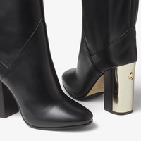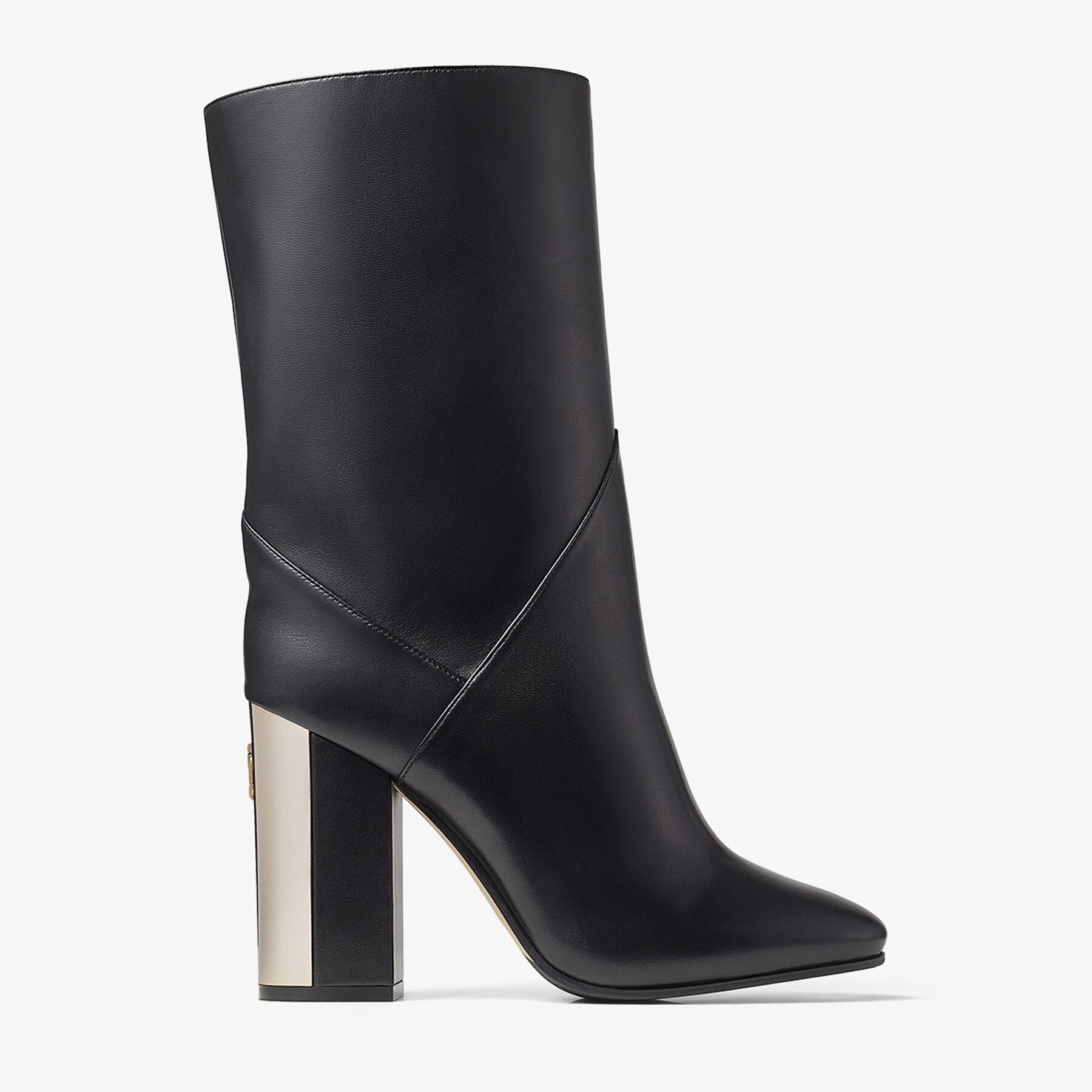 Details, Care & Fit Item No. RYDEAAB100NAP Classic in their simplicity, the RYDEA 100 ankle boots are Italian-crafted in black nappa leather. They are characterised by a heel made up of two parts, half chromed in gold and the other wrapped in leather. The heel is further embelished with a JC logo adding a statement to any look. Italian sizing. Fits true to size. - Nappa leather - Round toe - Ankle style - Heel height measures: 100mm/4 inches - Rubber sole - Made in Italy