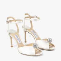 Ivory Satin Sandals with Crystal-Embellished Sphere