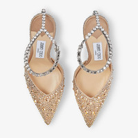 Details, Care & Fit Item No. SAEDA100ZPJ Blurring the line between footwear and jewellery, the iconic Saeda pump in satin is embellished entirely in hotfix crystals. It is made distinct with its delicate crystal anklet. This shining statement features 40 individually applied exquisite Swarovski crystals which includes a drop crystal that hangs elegantly at the back of the shoe. The anklet is designed and crafted to sit low on the ankle, effortlessly elongating the leg. Striking and glamorous, this pair is set on a 100mm stiletto heel. Italian sizing. Fits true to size. - Satin with hotfix crystals - Hand-finished Swarovski crystal anklet - Adjustable clasp - Pointed toe - Stiletto heel - Leather lining and sole - Heel height measures: 100mm/3.9 inches - Made in Italy - This product uses responsible satin – a mix of 28% organic silk and 72% certified viscose