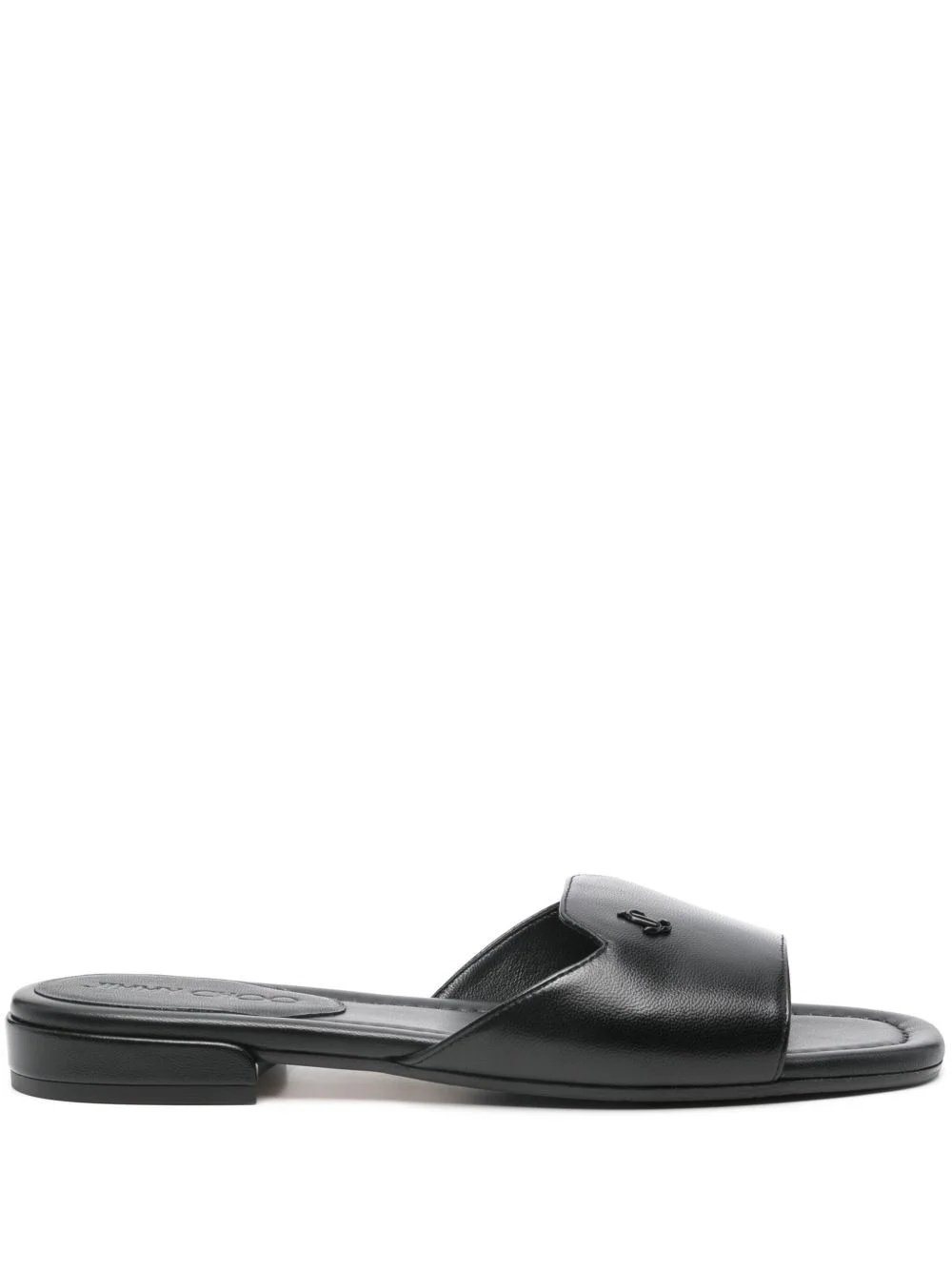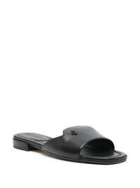Dina slides Highlights - Black - Branded leather insole - Flat rubber sole - Square open toe - Logo plaque Imported Composition Outer: Calf Leather 100% Sole: Rubber 100%, Calf Suede 100% Lining: Calf Leather 100%