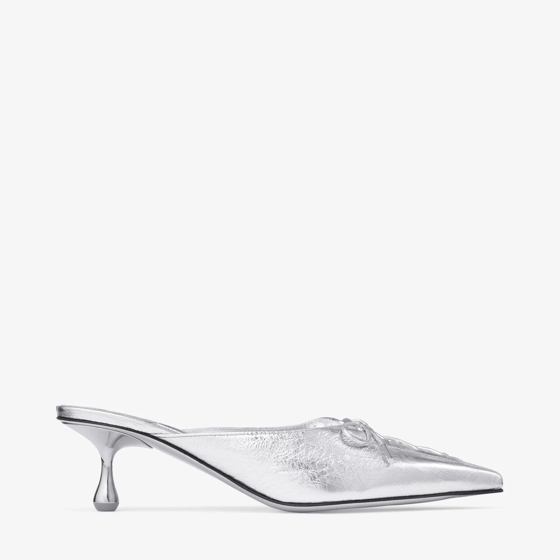 Details, Care & Fit The Scarlett mule in vintage metallic leather is a fresh take on the iconic Scarlett Pump silhouette, now elevated by our signature drop heel in 35mm. The corset detail on the upper is carefully crafted by threading leather lace by hand, which is secured with an invisible stitch. - Vintage metallic leather - Drop heel - Corset detail - Leather laces - Heel height measurements: 35mm / 1.3 inches - Made in Italy - By purchasing this product, you join our commitment to support responsible leather manufacturing through the Leather Working Group