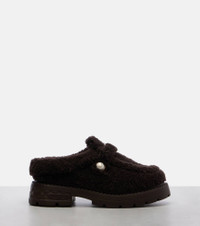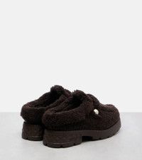 Slip into cozy sophistication with the Shea platform mules from Jimmy Choo. Crafted from plush shearling, this soft pair features a signature silver-toned detail and chunky rubber soles. Product Details - Upper: shearling - Lining: shearling - Sole: shearling insole, rubber sole - Toe shape: round toe - Made in Italy - Includes: shoe box, dust bag - Designer color name: Chocolate - Item color: brown - Hardware color: gold - Item number: P01109852 Size & Fit - True to size - European sizes - 3cm-1" platform (size EU 38) - 4,5cm-2" wedge heel (size EU 38)