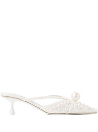 50mm Sana pearl-embellished pointed-toe mules Highlights - White - Faux pearl embellishment - Pointed toe - Stiletto heel - Criss-cross straps Made in Italy Composition Lining: Leather 100% Outer: Leather 100% Sole: Leather 100% SIZE & FIT Measurement HEEL 1.96 in(5 cm)
