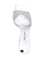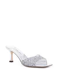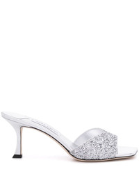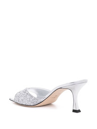 Skye 70mm glittery mules Highlights - Silver-tone - Calf leather - Metallic effect - Glitter detailing - Slip-on style - Square open toe - Branded footbed - 70mm sculpted heel Made in Italy Composition Sole: Calf Leather 100% Lining: Calf Leather 100% Outer: Calf Leather 100%, Glitter 100% SIZE & FIT Measurement HEEL 2.95 in(7.5 cm)