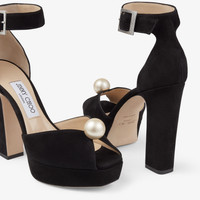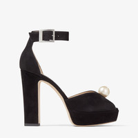 Black Suede Platform Sandals with Pearl Detailing