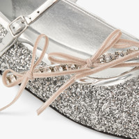 Silver and Macaron Powder Glitter Fabric Ballerina Flats