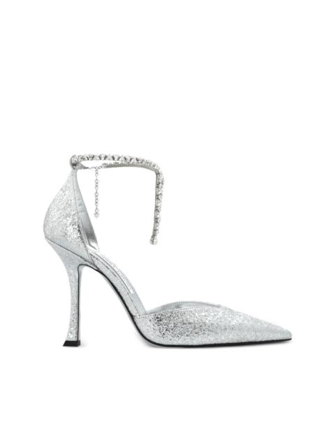 Stevie crystal-anklet V-cut pumps Highlights - Brown - Satin finish - Crystal embellishment - Adjustable anklet - Pointed toe - Spool heel Made in Italy Composition Lining: Calf Leather 100% Sole: Rubber 100%, Calf Leather 100% Outer: Satin 100% SIZE & FIT Measurement HEEL 3.93 in(10 cm)