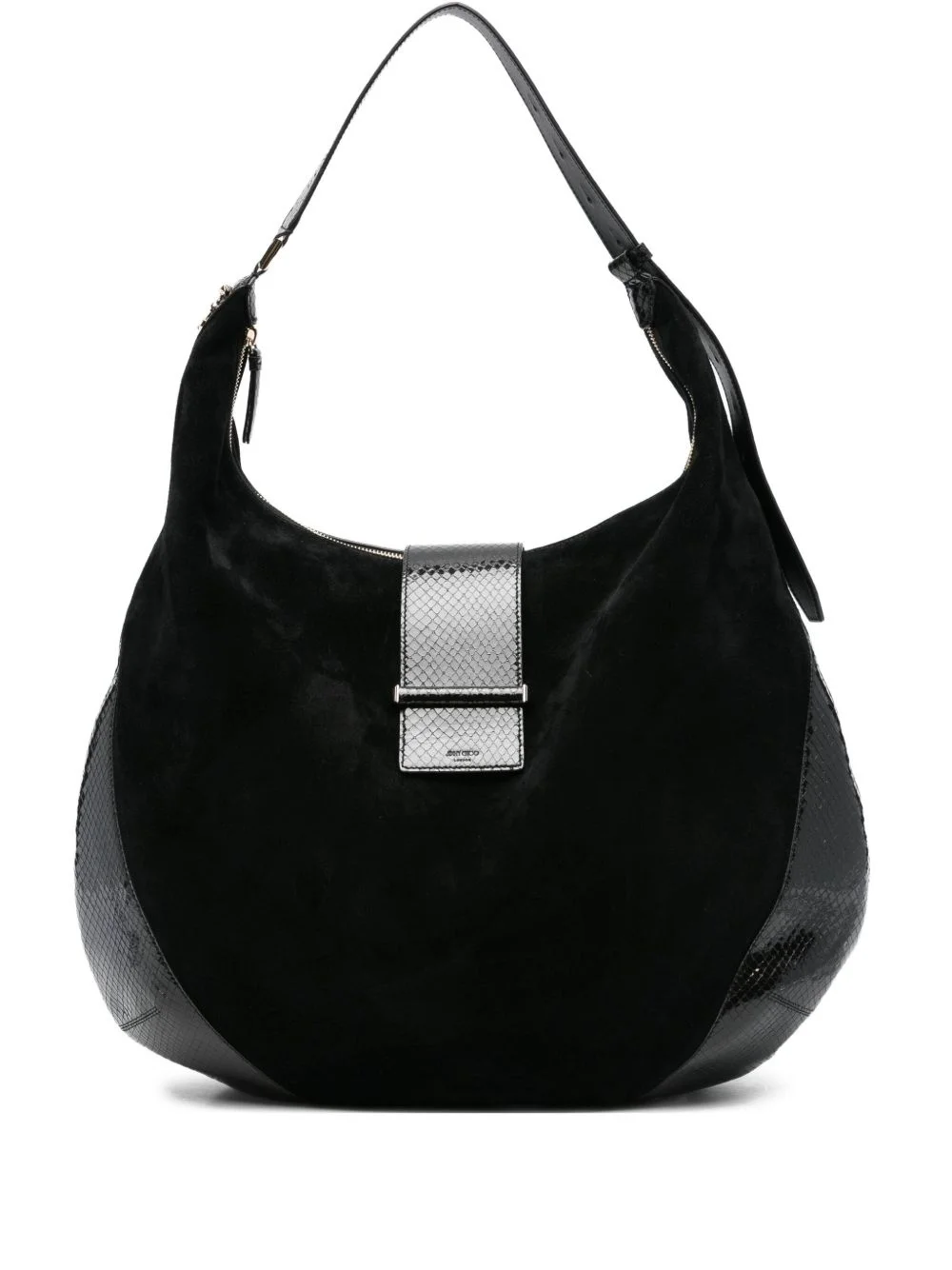 suede-leather shoulder bag Highlights - Black - Suede body - Snakeskin-pattern trim - Zip fastening - Top handle - Gold-tone hardware Made in Italy Composition Outer: Suede 100%, Leather 100% SIZE & FIT Model measurements Height 5 ft 10 in(1.78 m) Bust/Chest 33.46 in(85 cm) Hips 36.22 in(92 cm) Waist 23.22 in(59 cm) Measurement DEPTH 4.33 in(11 cm) HEIGHT 14.96 in(38 cm) WIDTH 14.17 in(36 cm)