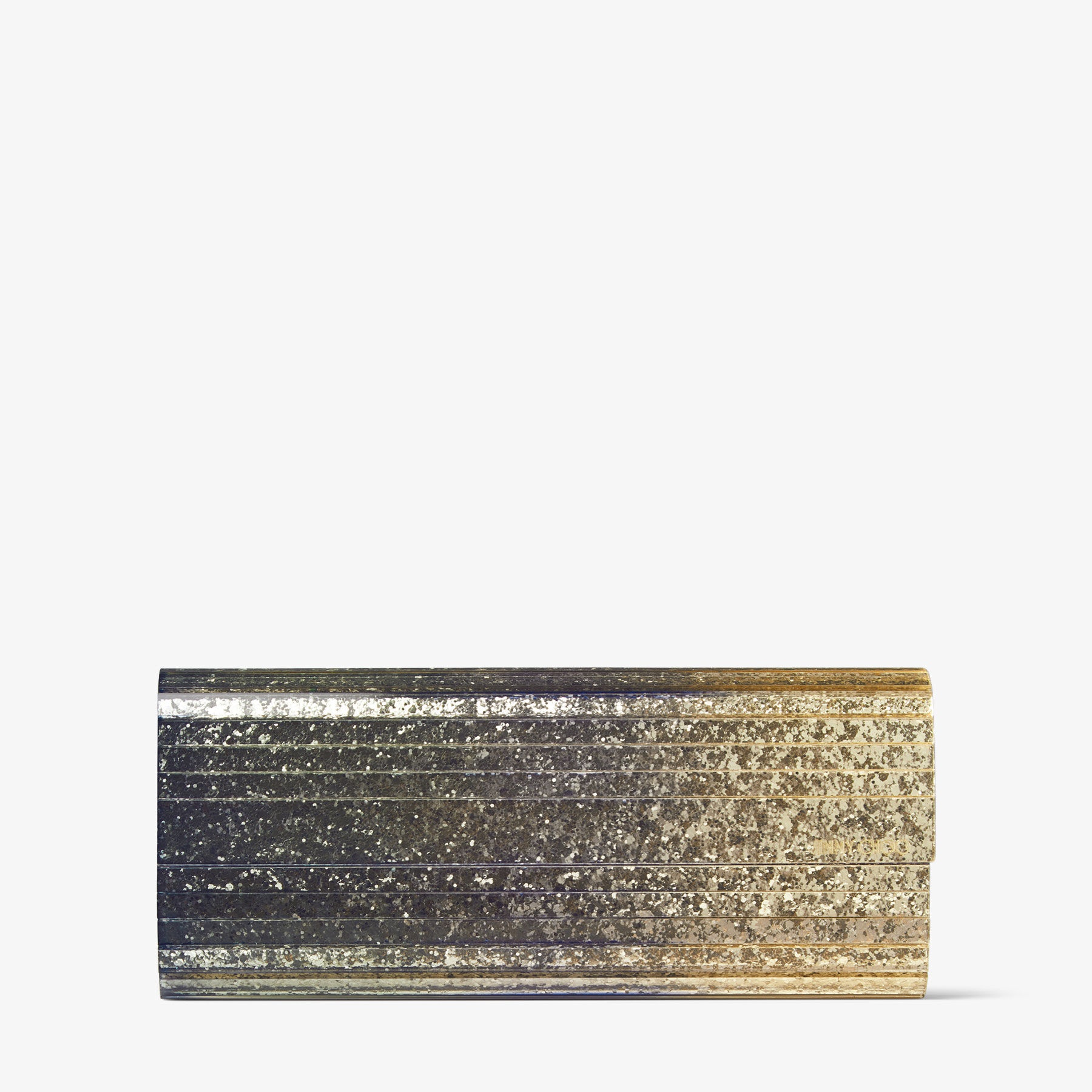 Details, Care & Fit Item No. SWEETIETDG_S The architectural lines and sleek shape of our Sweetie clutch give off a modern attitude. A clear example of signature glamour, this design is dipped in shimmering metallic dégradé glitter. Carry it as a clutch or sling it effortlessly over the shoulder via the long chain strap. - Dégradé glitter acrylic - Detachable chain strap - Leather side gusset - Magnetic snap closure - Interior side slip pocket - Engraved Jimmy Choo leather plaque - Bag measures: L 24 x H 10 x W 5cm - Max strap drop measures: 44cm - Made in Italy
