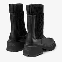 Details, Care & Fit Crafted in shiny calf leather, the Tamia boot features stretch cable-knit panels and a foldover collar, creating a tactile contrast. A rounded toe, treaded rubber sole and 70mm block heel ground the style, while double-stitched seams showcase artisanal detail. Tamia is finished with subtle branding across the heels and a branded, leather tag. - Shiny calf leather - Cable knit - Pleated rubber sole - Rounded toe - Double-stitching - Jimmy Choo logo - Jimmy Choo leather tag - Block heel - Heel height measures: 70mm / 2.7 inches - Made in Italy - By purchasing this product, you join our commitment to support responsible leather manufacturing through the Leather Working Group