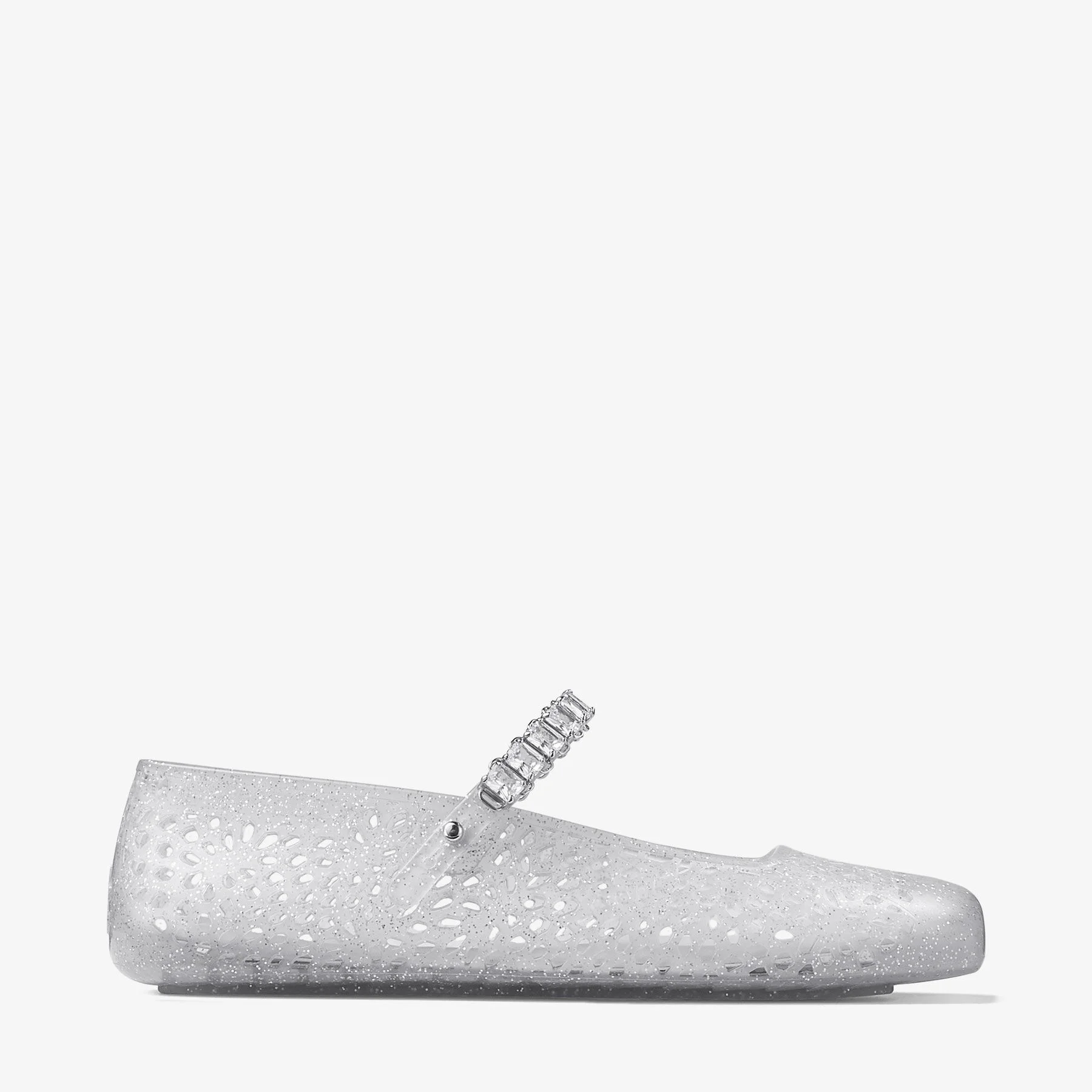 Clear Jelly Ballerina Flats with Crystal Embellishment