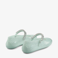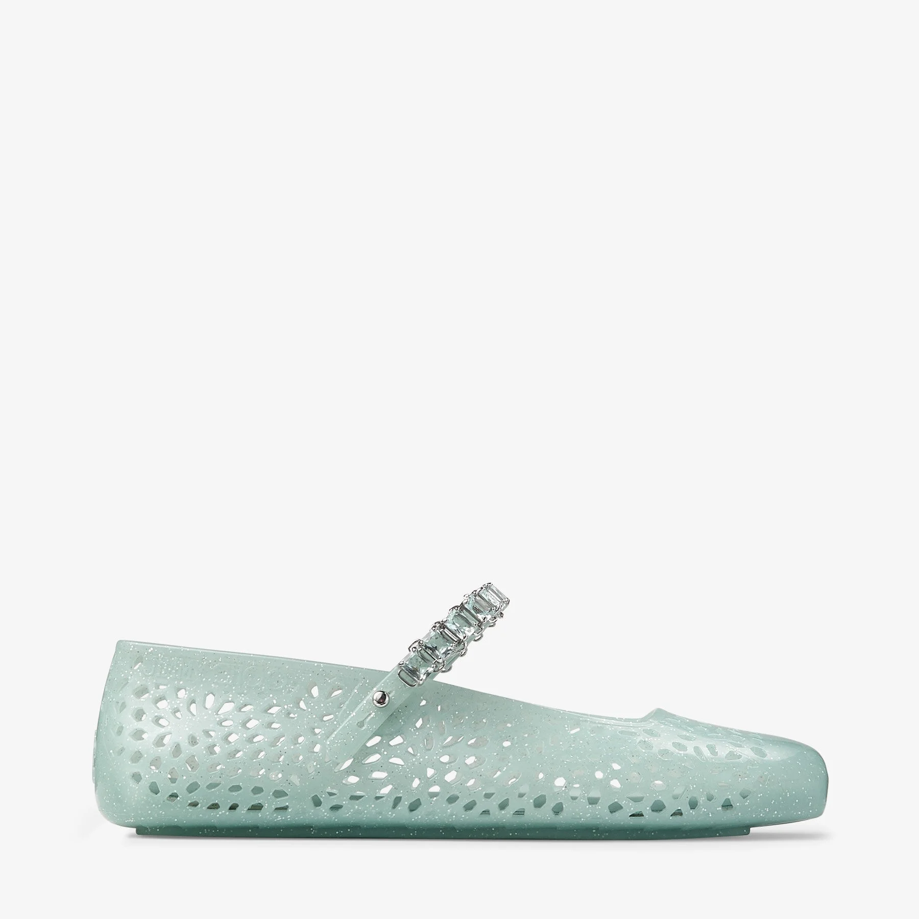 Light Verde Jelly Ballerina Flats with Crystal Embellishment