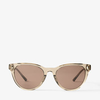 Details, Care & Fit Trace is a timeless style with transparent pantos frames. This effortlessly chic style is designed with dark brown shaded lenses and complemented by a signature Diamond stud on the temple. - Acetate - Bio-nylon lenses - Dark brown shaded lenses - Transparent pantos frame - Diamond stud - 100% UVA and UVB protection - Presented with a Jimmy Choo case and cleaning pouch - Lens width: 5.3cm - Bridge length: 2cm - Temple length: 14.5cm - Made in Italy