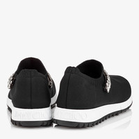 Black Knit Trainers with Crystal Detailing