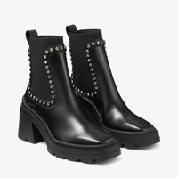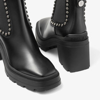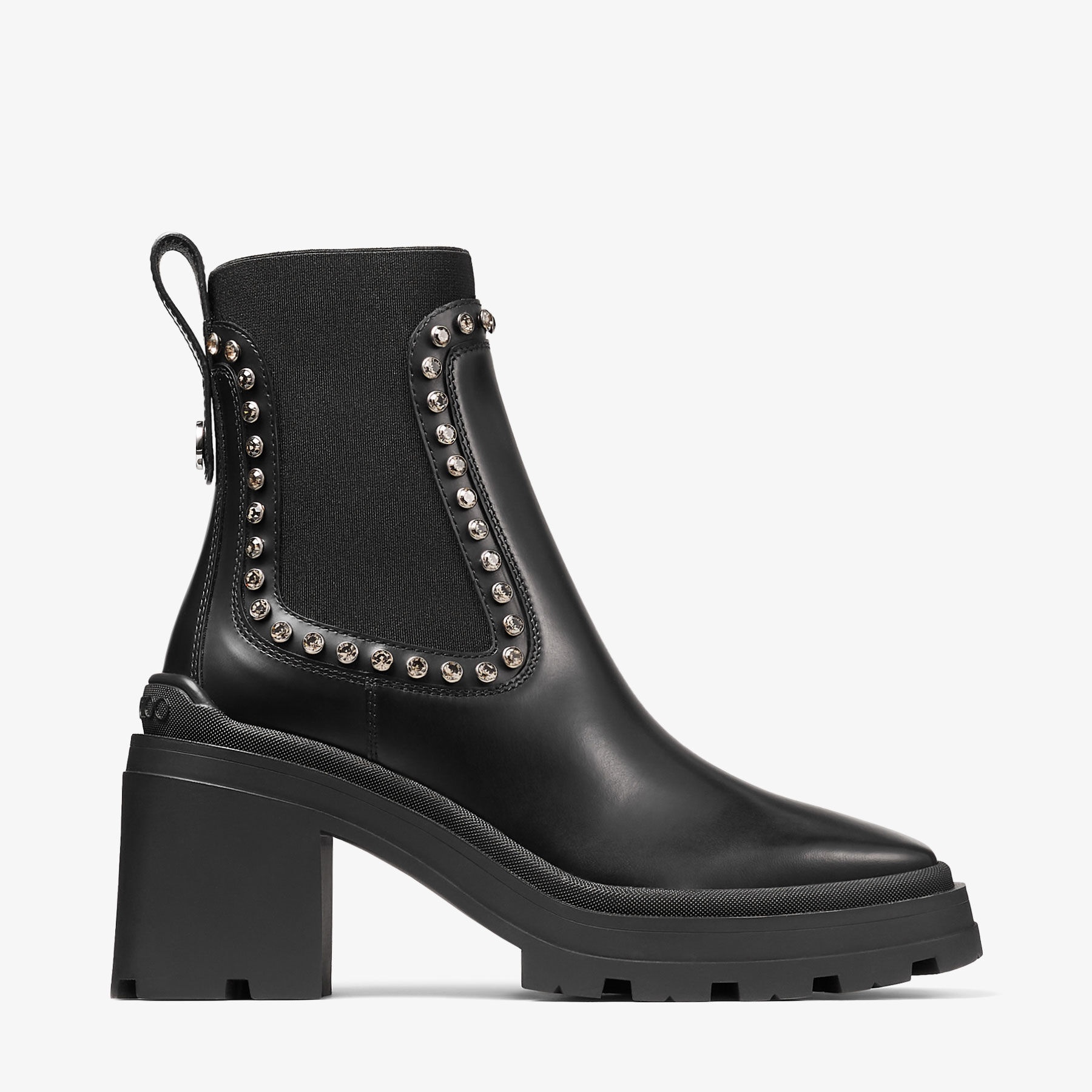 Black Smooth Leather Ankle Boots with Crystal Embellishment