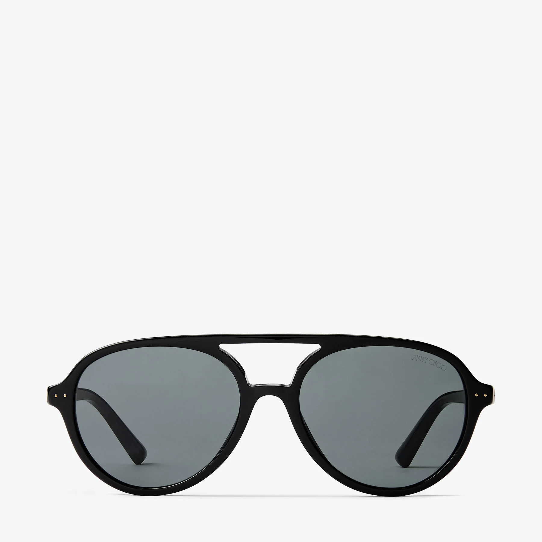 Details, Care & Fit The Vira updates the classic aviator with a modern, soflty curved frame. Crafted from black acetate with tonal lenses and sculpted temples, the design is finished with the Jimmy Choo logo for a signature touch. - Acetate containing 27% recycled content - Bio-nylon lenses - Grey shaded lenses - Aviator frame - Jimmy Choo logo - 100% UVA and UVB protection - Presented with a Jimmy Choo case and cleaning pouch - Lens width: 5.5cm - Bridge length: 1.7cm - Temple length: 14cm - Made in Italy