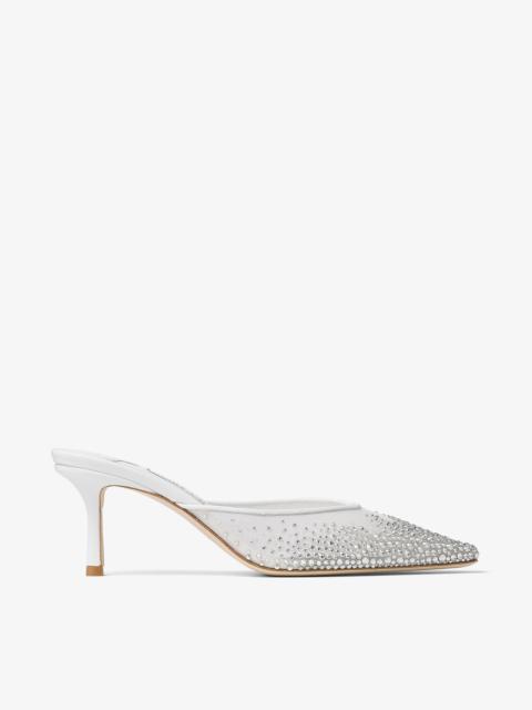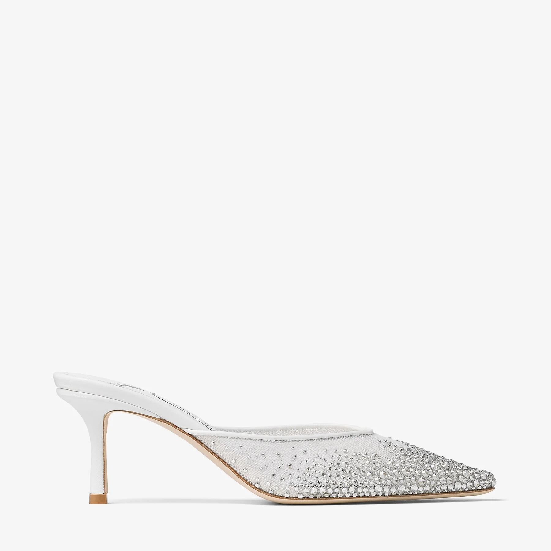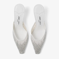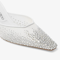 White Degrade Crystal Mesh Mules with Pearl Charm