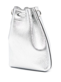mini Cinch crossbody bag Highlights - Silver-tone - Leather - Metallic finish - Adjustable detachable shoulder strap - Debossed logo to the front - Main compartment - Internal logo plaque - Contrast lining - Drawstring fastening - This piece comes complete with a protective dust bag. Made in Italy Composition Outer: Metallic Leather 100% SIZE & FIT Model measurements Height 5 ft 9 in(1.75 m) Bust/Chest 31.88 in(81 cm) Hips 34.64 in(88 cm) Waist 24.01 in(61 cm) Measurement DEPTH 1.18 in(3 cm) HEIGHT 5.9 in(15 cm) STRAP 46.06 in(117 cm) WIDTH 5.9 in(15 cm)