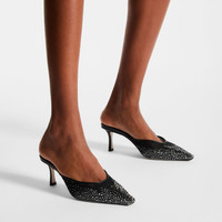 Black Crystal Mesh Mules