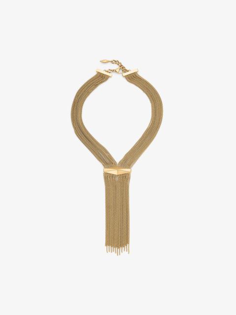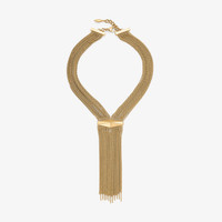 Details, Care & Fit Bold, sculptural and designed to captivate – the Zandra necklace brings drama to after-dark dressing. Crafted from strands of vintage gold-tone chains, its structured collar silhouette falls into a sweeping chandelier fringe. Diamante accents catch the light with every movement, creating a look that feels powerful and polished in equal measure. - Multi chain chandelier - Diamond detailing - Adjustable clasp closure - Presented in Jimmy choo pouch and box - Due to its handcrafted nature, every style is unique and there may be small differences between the pieces - Made in Italy - Please note that this product is not eligible for return