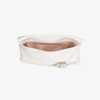 Details, Care & Fit Crafted from satin with pearl detailing, the Zandra clutch bag is wrapped by a crystal chandelier bracelet that creates a unique, soft silhouette. It is a statement style, complemented by our signature Diamond hardware. - Satin - Crystal chandelier bracelet - Diamond hardware - Bag measures: L 30 x H 15.5 x W 2.5cm - Made in Italy