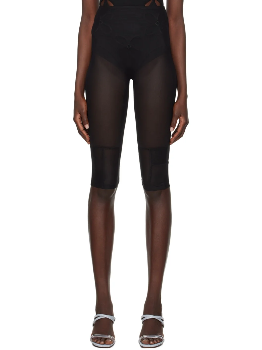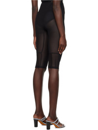Sheer stretch polyester mesh shorts. Integrated recycled polyester jersey bikini bottom-style underlay with cutouts and O-ring hardware throughout. · Layered and paneled construction · High-rise · Elasticized waistband Supplier color: Black Body 1: 82% polyester, 18% elastane. Body 2: 80% recycled polyester, 20% elastane. Made in Uzbekistan 241023F088000