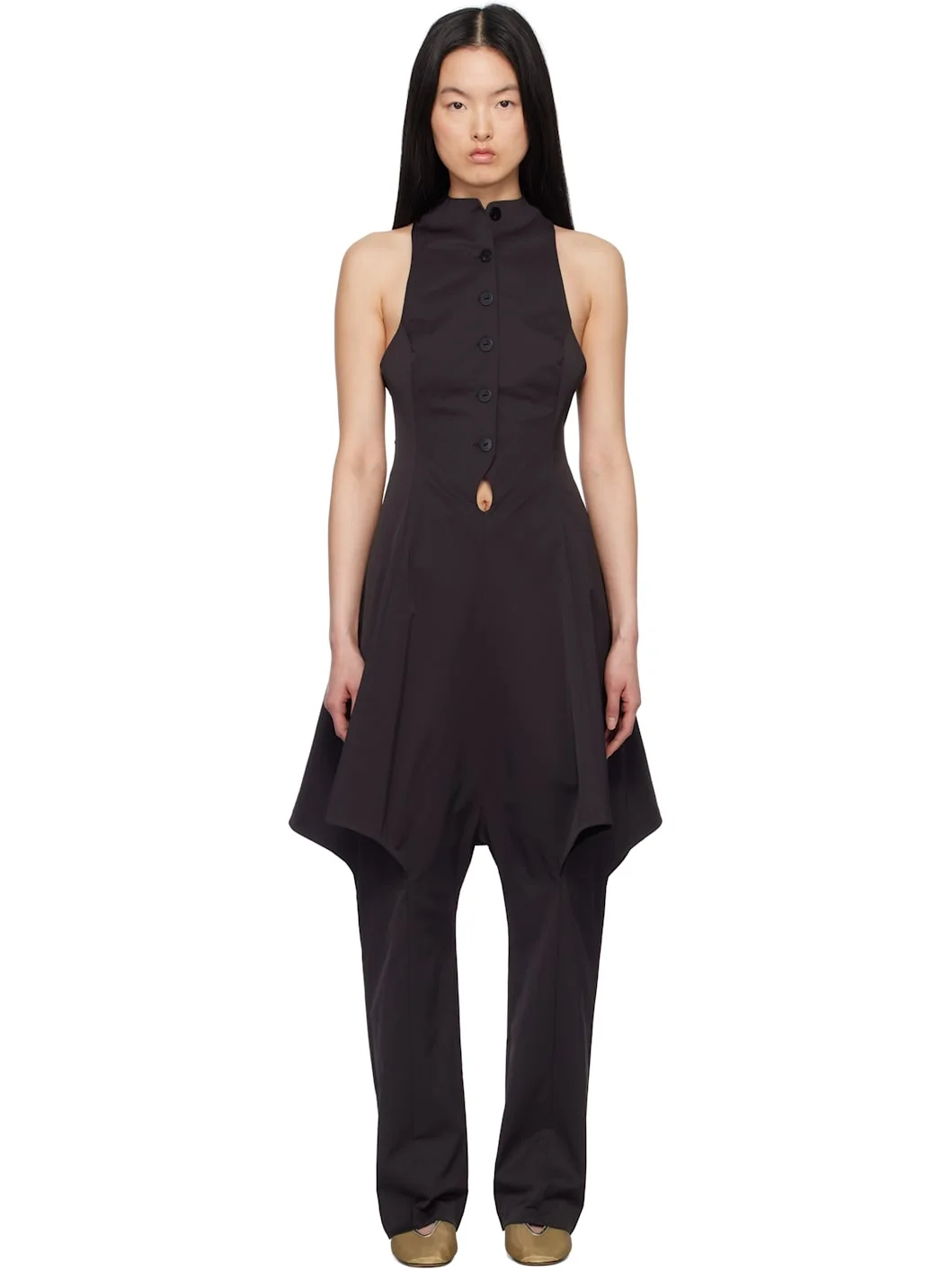 Cotton- and polyester-blend twill jumpsuit. · Paneled construction · Mock neck · Button closure · Princess seams · Keyhole cutout at front · Cutouts at knees, outseams, and back · Dropped inseam Supplier color: Black 70% cotton, 30% polyester. Made in Uzbekistan 251023F070000