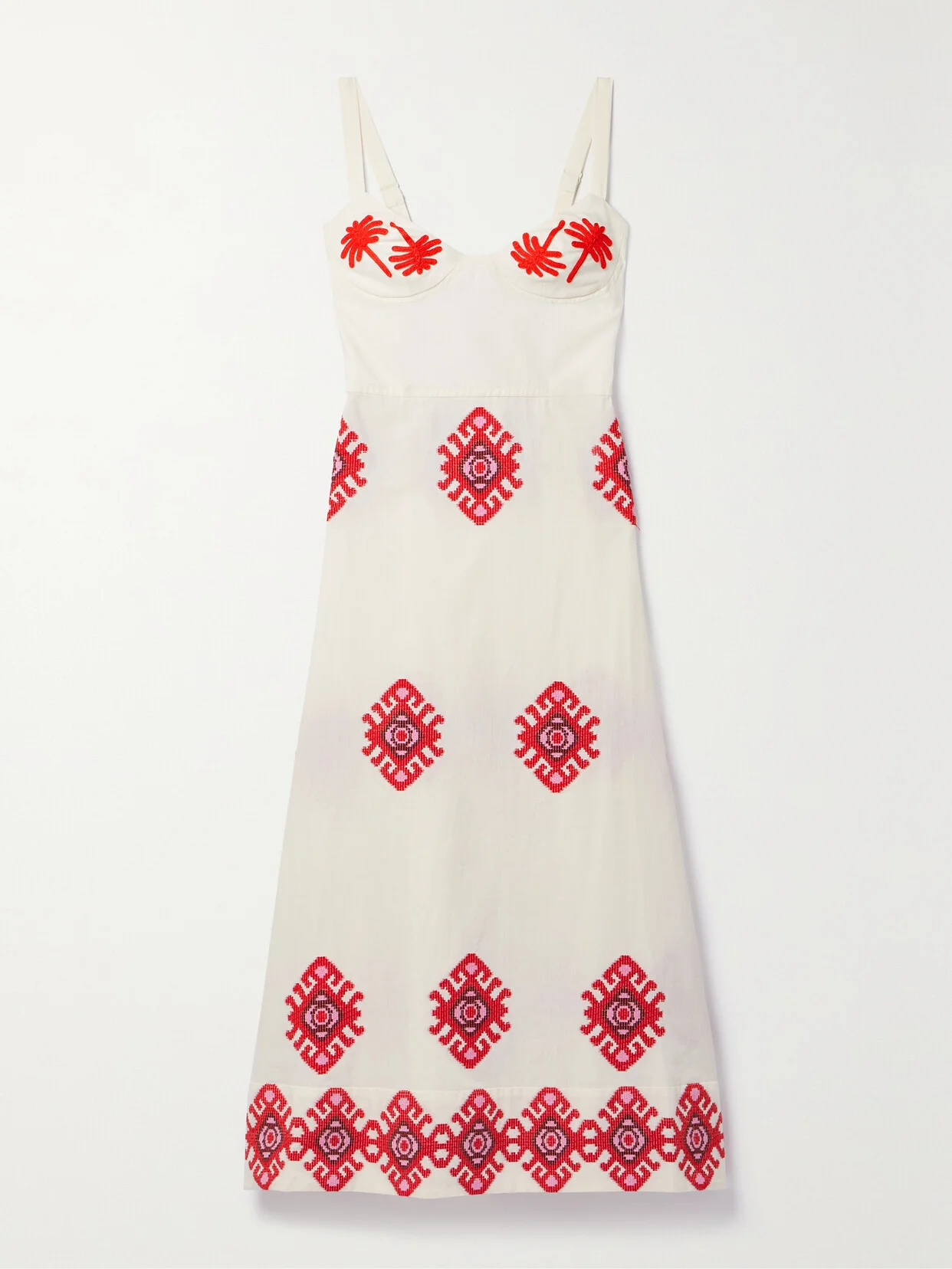 + Net Sustain God Enkai Embroidered Cotton-poplin Midi Dress