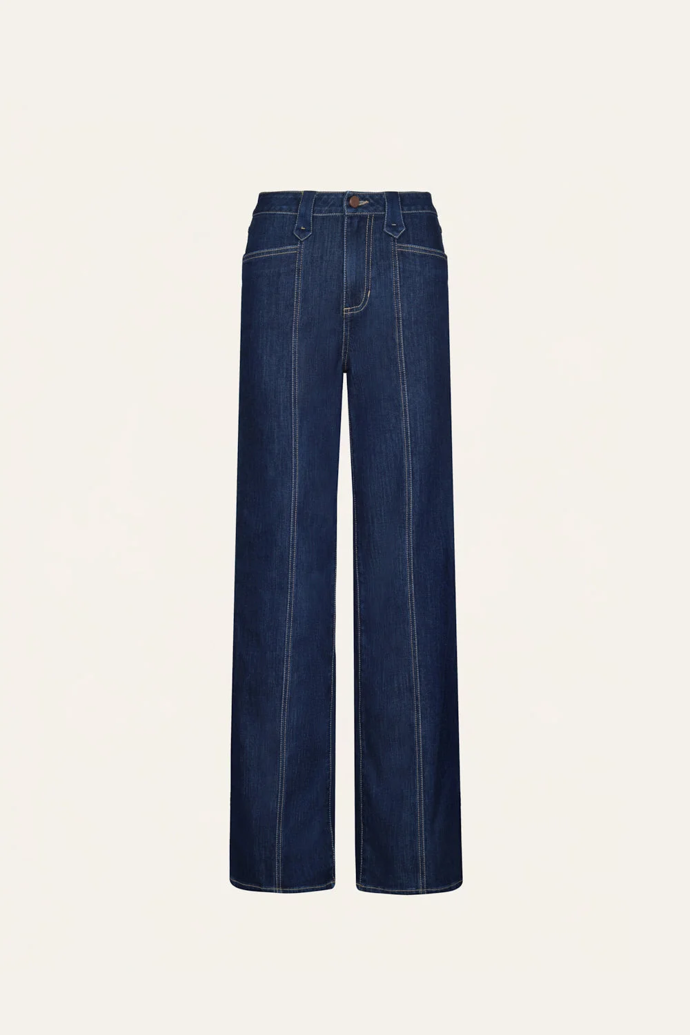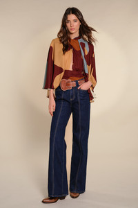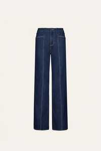 Denim boot-cut jeans with a high-rise waist and subtle flare at the hem. A classic JO silhouette, finished with contrast stitching along the seams. Size and Fit: - Designed with a slim fit. - High-rise, boot-cut. - Please refer to our size chart for detailed guidance. Product Details: Closure: Front Zipper Composition: 64% Cotton, 34% Polyester, 2% Elastane Fabrication: Denim Color: Navy Denim Made in Colombia Dimensions: Length 44.09''