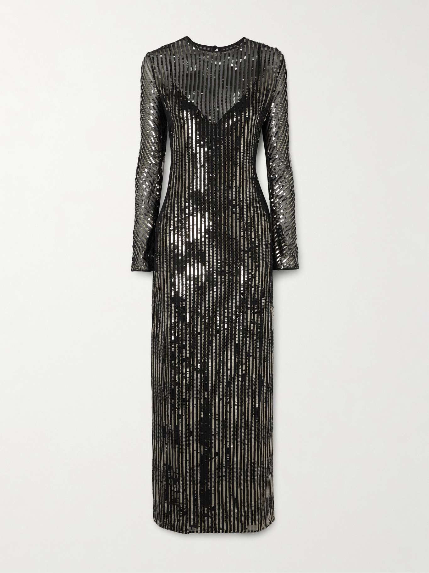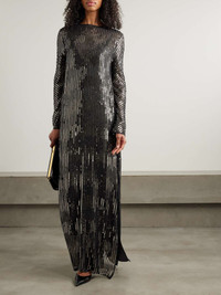 EDITORS'NOTES Johanna Ortiz' 'Actitud Nautica' dress is embellished with stripes of sequins that catch the light and create an elongating effect. It's cut from fluid tulle in a flowing shape and has a leg-baring side slit. Wear yours with equally sparkly accessories. SIZE & FIT Model measurements: - Fits true to size, take your normal size - Designed for a loose fit - Mid-weight, non-stretchy fabric - Model is 177cm/ 5'10" and is wearing a US 4 - Bust: 77cm/ 30.5" - Waist: 62cm/ 24.5" - Hip: 88cm/ 34.5" DETAILS & CARE - Black tulle - Button fastening at back - 100% viscose - Hand wash or dry clean