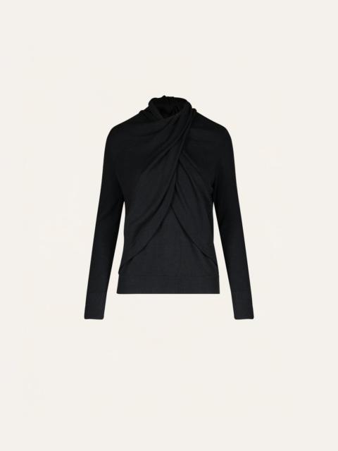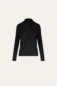 A classic Johanna Ortiz silhouette in soft Pima cotton. Defined by a sculptural draped front that gathers at the neckline. Finished with long sleeves. An easy layer for Fall-Winter days. Size and Fit: True to size. Please refer to our size chart for detailed guidance. Product Details: Closure: Slip On Composition: 100% Pima Cotton Fabrication: Pima Cotton Color: Black Made in Peru
