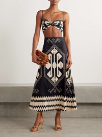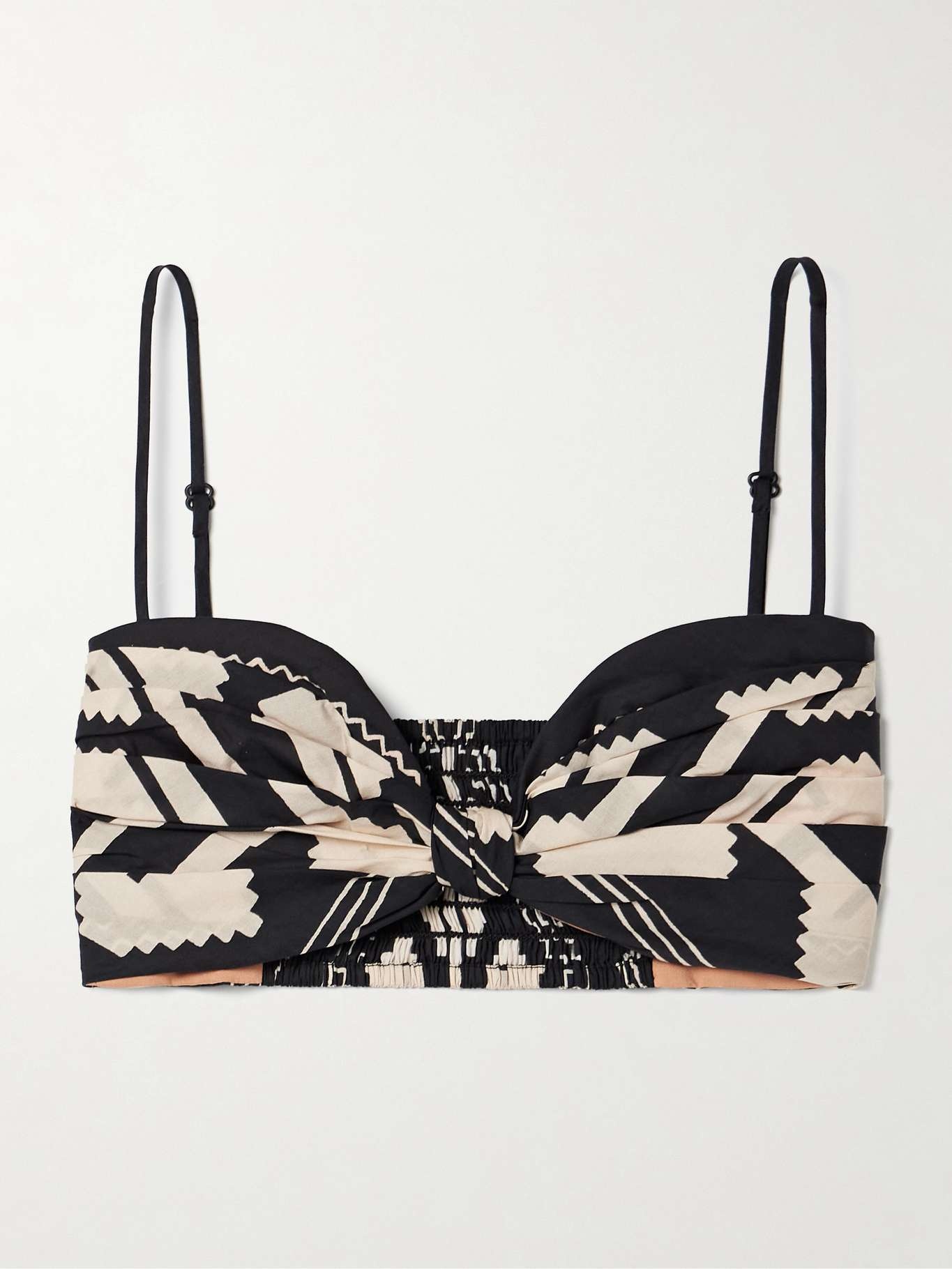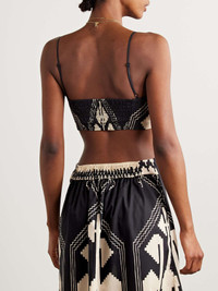 EDITORS'NOTES Johanna Ortiz's 'Nudos Del Mar' top will look so chic with the matching skirt on vacation. It's cut from cotton-poplin printed with geometric motifs, knotted at the front and shirred at the back for a flexible fit. SIZE & FIT Model measurements: - Fits true to size, take your normal size - Those with a large bust may wish to take the next size up - Intended for a close fit - Partially adjustable shoulder straps - Cropped length - Lightweight, non-stretchy fabric - Model is 175cm/ 5'9" and is wearing a US 2 - Bust: 75cm/ 29.5" - Waist: 60cm/ 23.5" - Hip: 93cm/ 36.5" DETAILS & CARE - Black and cream cotton-poplin - Slips on - 100% cotton
