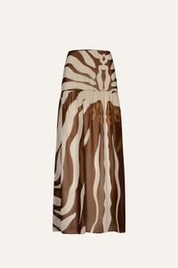 A flowing eco-georgette skirt in a rich Mocca and Ecru print. Lightweight and airy, it’s designed to be worn effortlessly over swimwear. Pair with the matching one-piece for a coordinated look. Size and Fit: - High-rise, full skirt. - Please refer to our size chart for detailed guidance. Product Details: Closure: Back Zipper Composition: 100% Recycled Polyester Fabrication: Eco Georgette Color: Mocca/Ecru Made in Colombia Dimensions: Length 40.6''