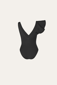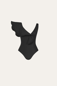 This black swimsuit embodies the classic Johanna Ortiz swim aesthetic with its signature one-shoulder design and bold ruffled detail. Size and Fit: Designed for a slim fit. Please refer to our size chart for detailed measurements and guidance. Product Details: Closure: Slip On Composition: 78% Recycled Polyester, 22%Elastane Fabrication: Lycra Color: Black Made in Colombia
