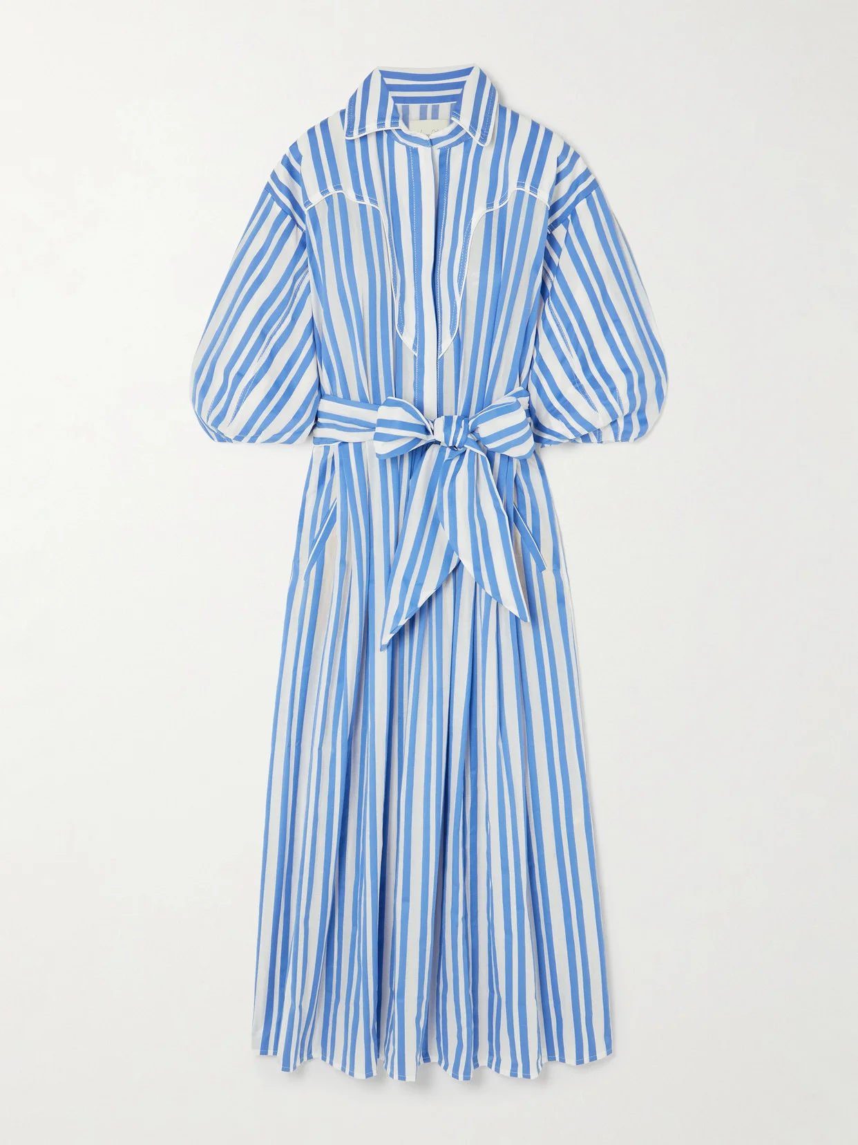 Johanna Ortiz's ‘Buena Mar' midi dress is perfect for days when you want to look polished with minimal effort. It's made from crisp cotton-voile patterned with stripes and detailed with voluminous sleeves and a Western-inspired yoke. Use the matching tie belt to cinch the waist.