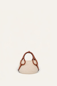 A handwoven Iraca palm mini tote enhanced with structured leather handles. Compact yet versatile, it embodies artisanal craftsmanship while offering a polished finish. Designed as a statement piece to complement both everyday ensembles and elevated resort looks. Product Details: Hand Woven Closure: Open Top With Tie Strap Composition: 80% Natural Fiber (Iraca Palm), 20% Cow Leather Fabrication: Iraca Bag With Leather Mini Tote Bag Color: Ecru/Wood Made in Colombia Dimensions: Length 11.02'', Width 9.45'', Height 7.09'', Drop: 5.51''