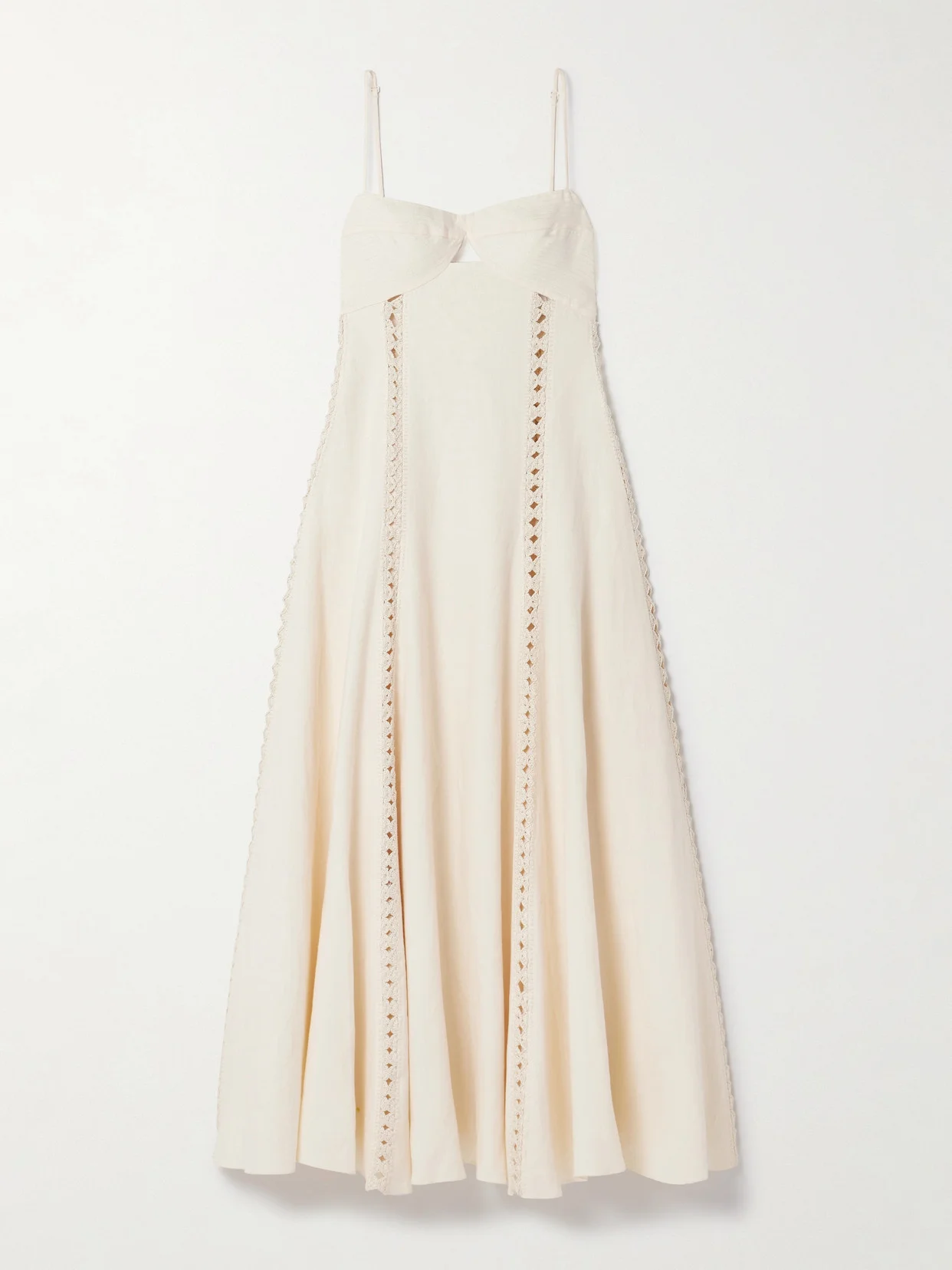 Catamaran Ventures Crochet-trimmed Embroidered Linen Midi Dress